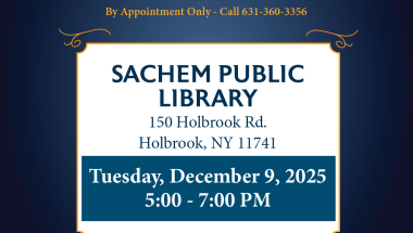 Where: NYS Senate 3rd District Office 90B West Main St. Patchogue NY 11772