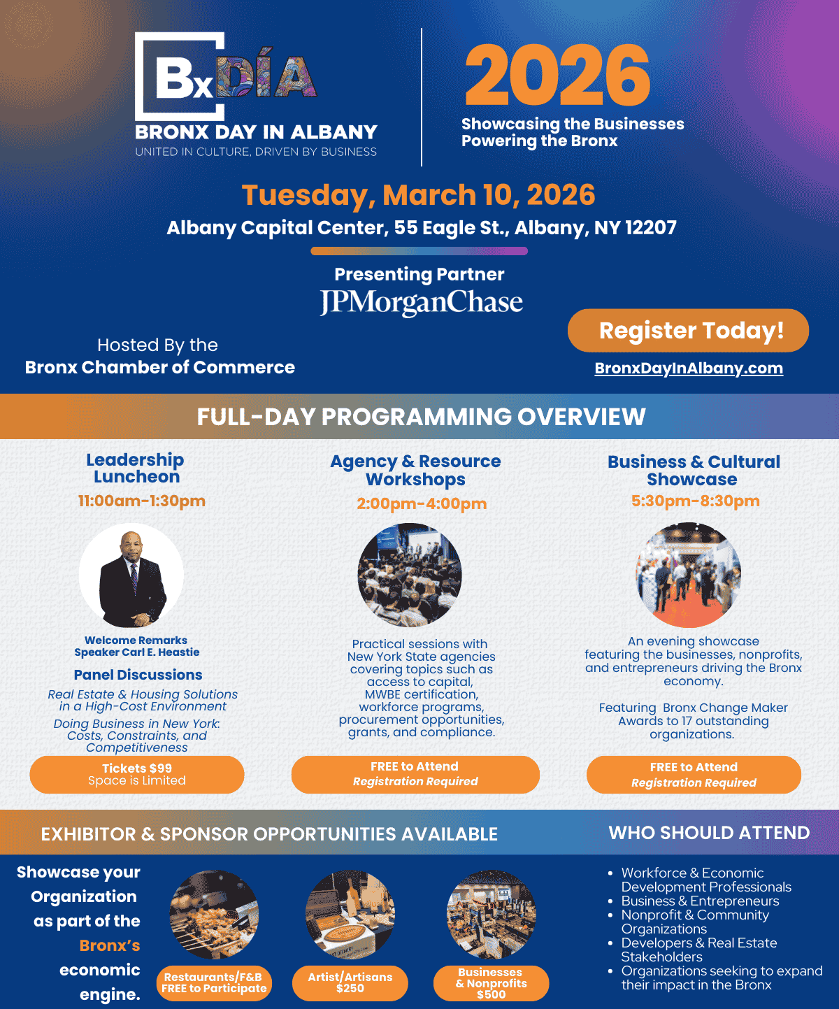 The Leadership Luncheon will bring together economic experts and statewide business leaders with Bronx businesses, cultural organizations, and community leaders for a powerful day of connection, learning, and collaboration.